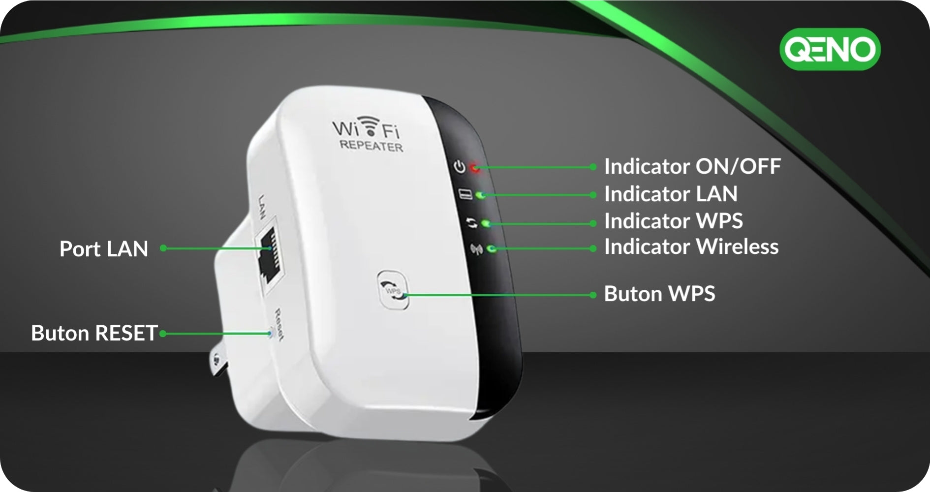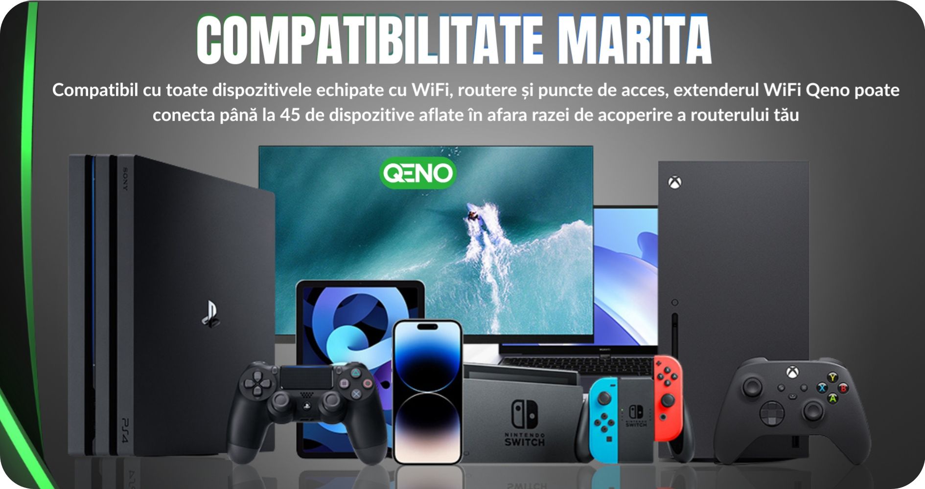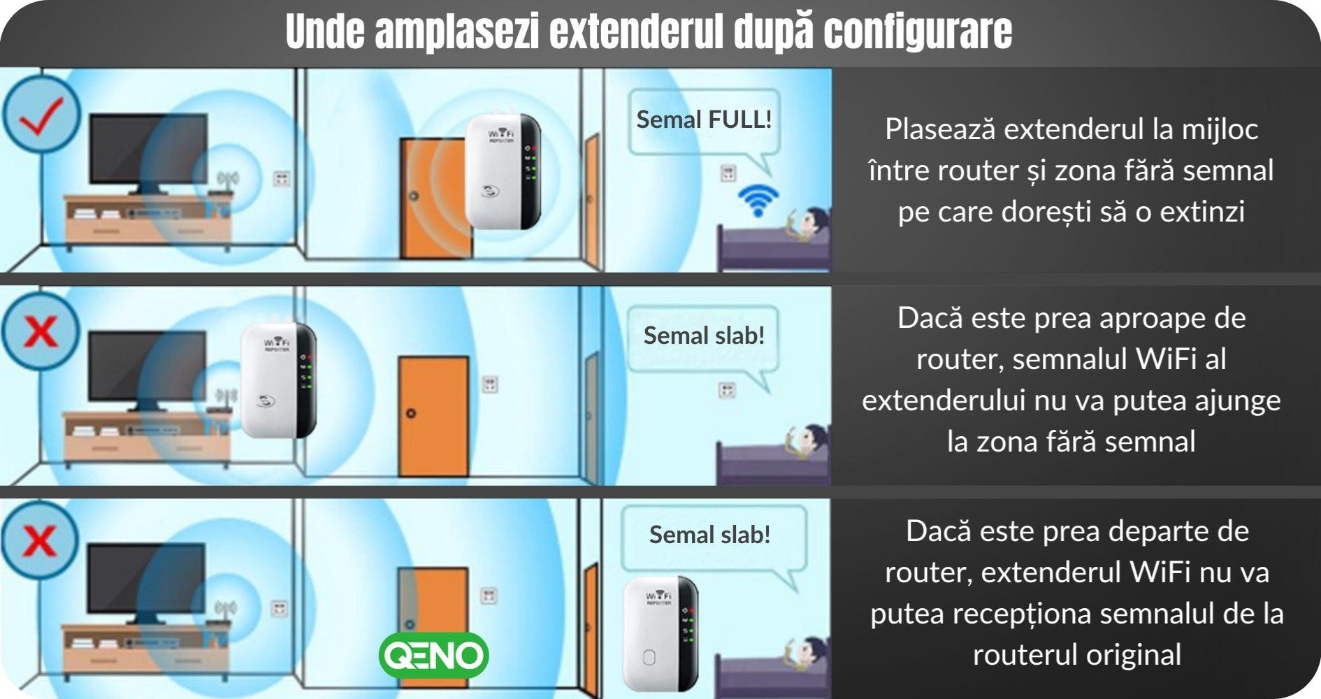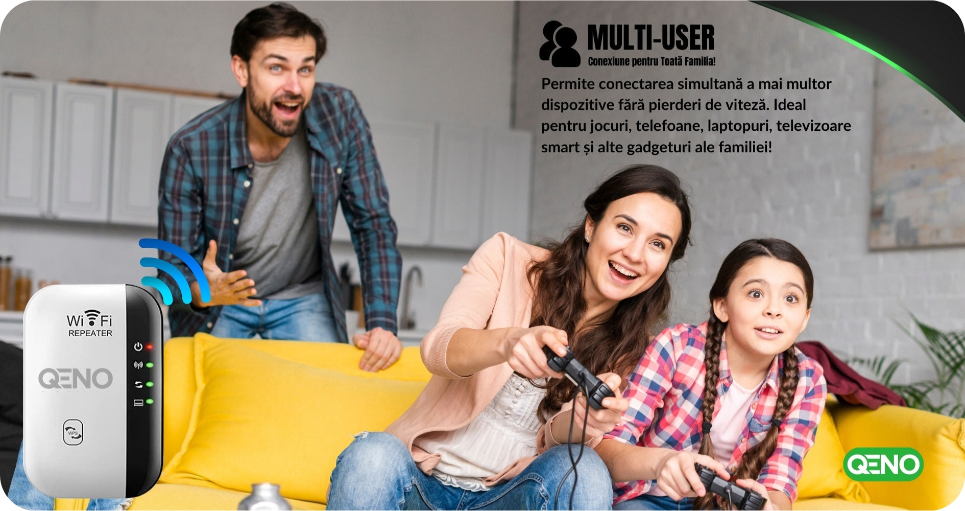 Adaptor Wireless Extender Qeno® Amplificator Semnal Range Wifi, poate asigura acces mai rapid la internet, fara fire sau cabluri.