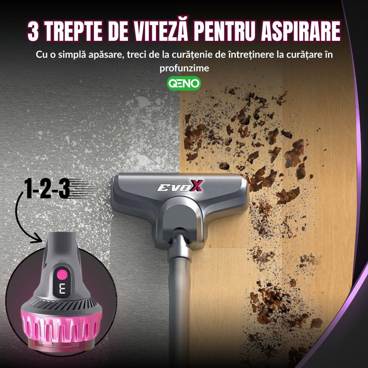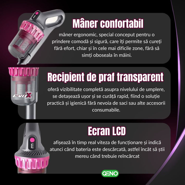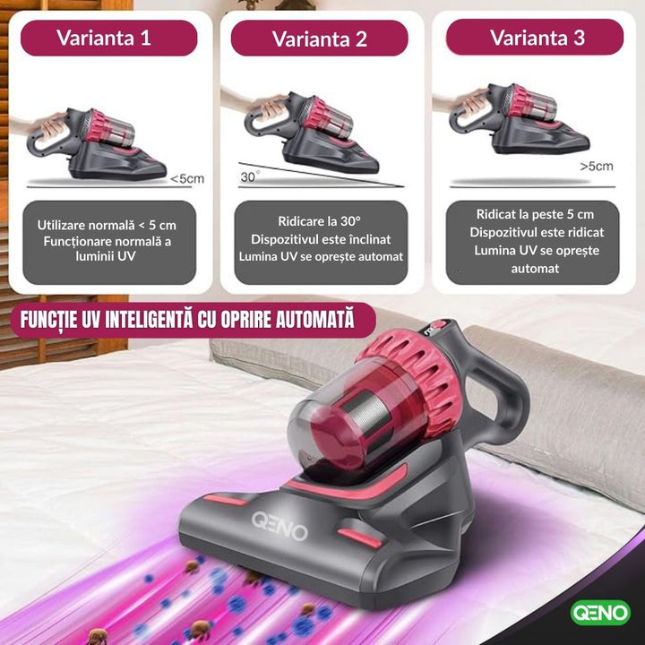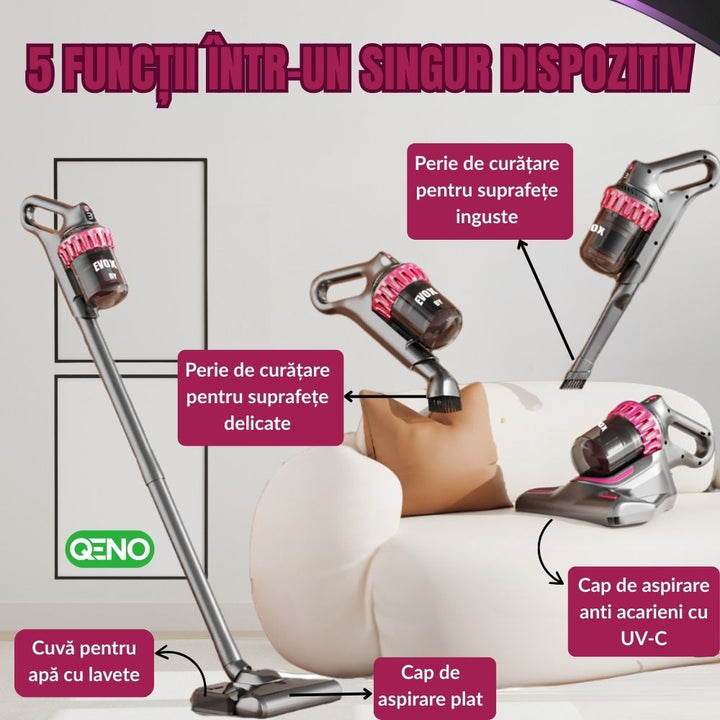 Aspirator Vertical Si De Mana Anti Acarieni, Fara Fir 5in1 Qeno® Evox