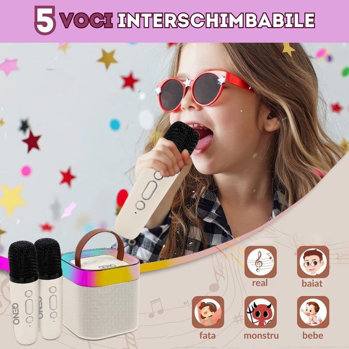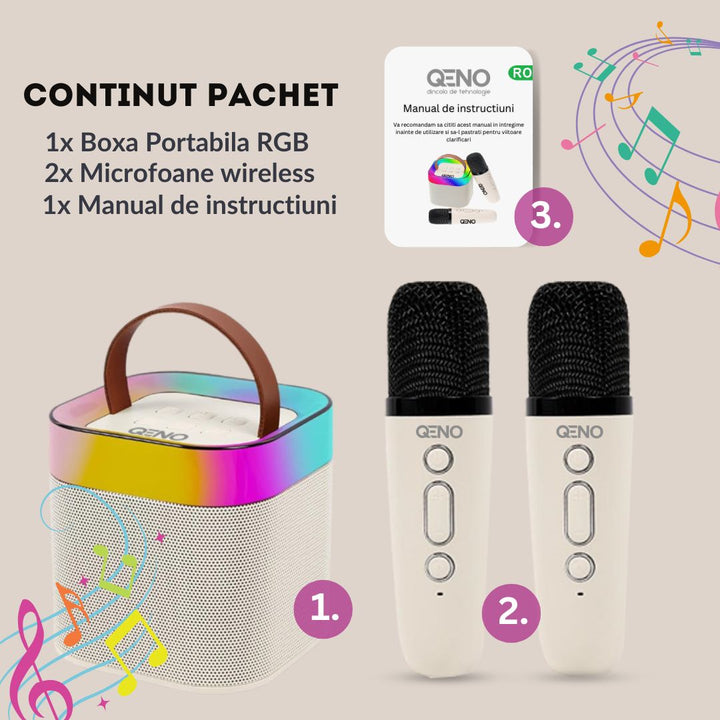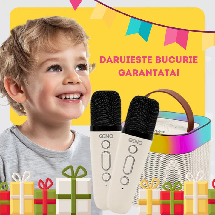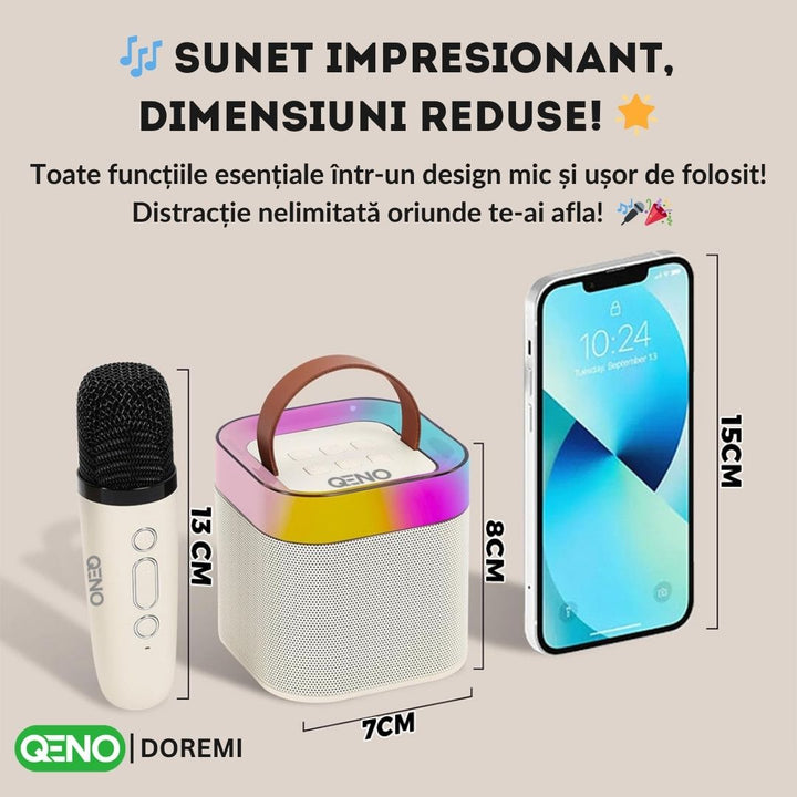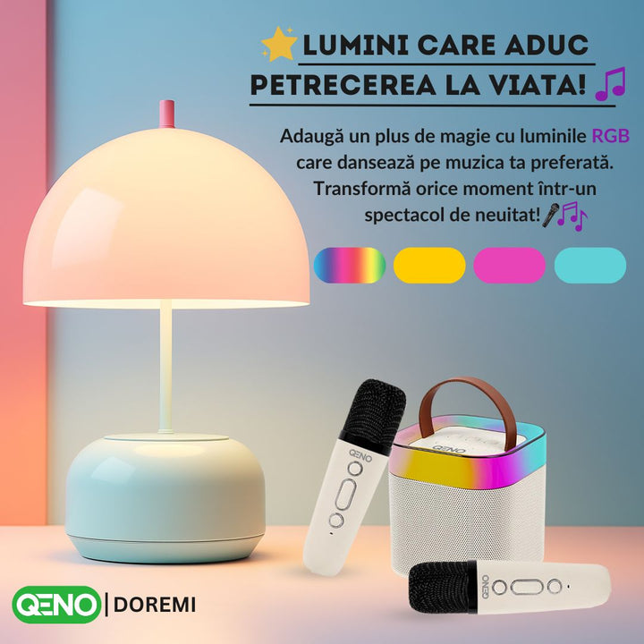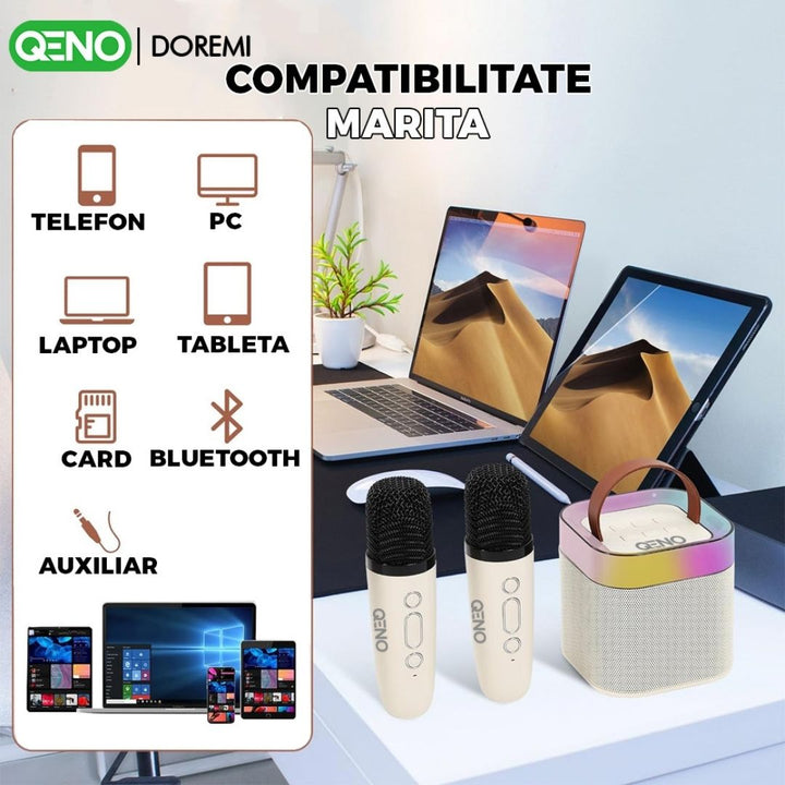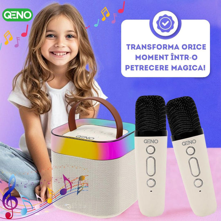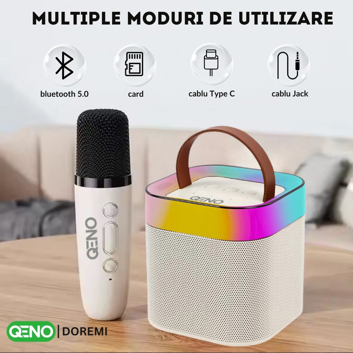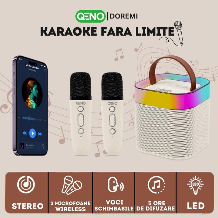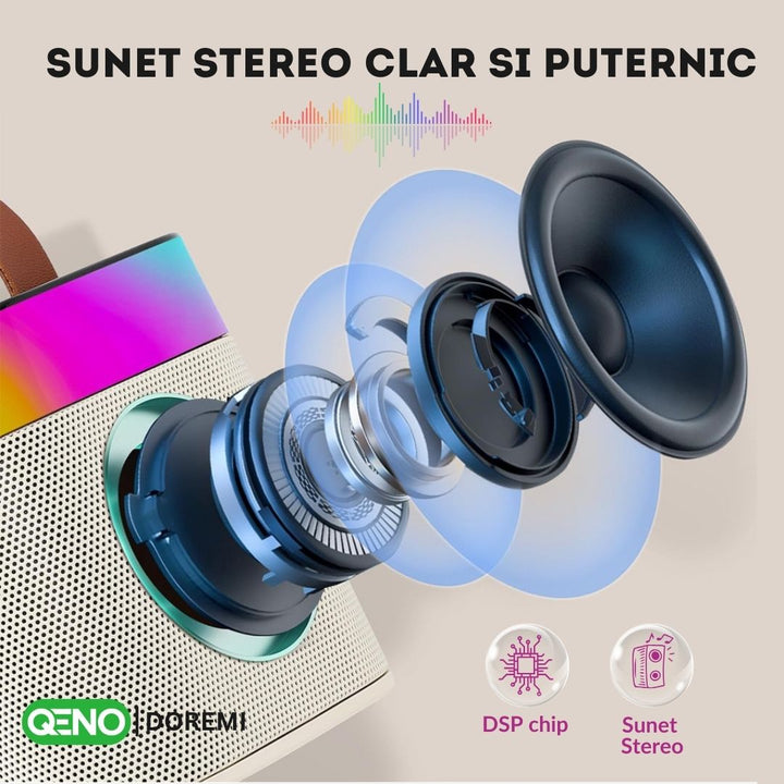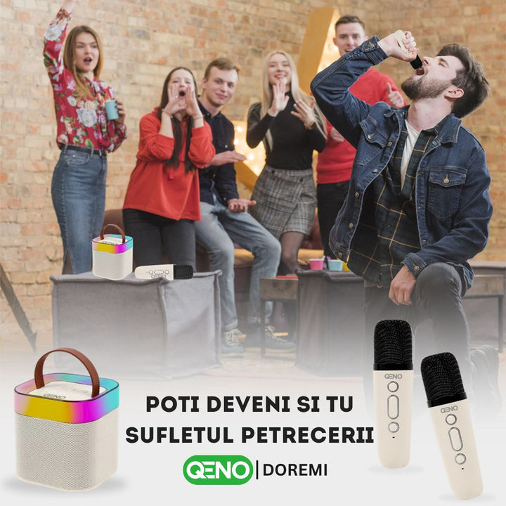 Set Boxa Bluetooth 5.3 Karaoke Cu 2 Microfoane Wireless DoReMi Qeno® Resigilat